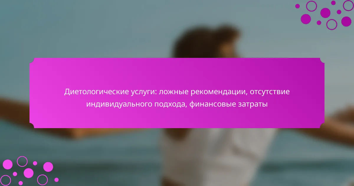 Диетологические услуги играют ключевую роль в достижении здоровья и благополучия, однако многие сталкиваются с ложными рекомендациями и отсутствием индивидуального подхода. Эти проблемы могут привести к неправильному пониманию питания и, как следствие, к неэффективным результатам. Кроме того, финансовые затраты на такие услуги могут оказаться неоправданными, если они не соответствуют уникальным потребностям клиента.