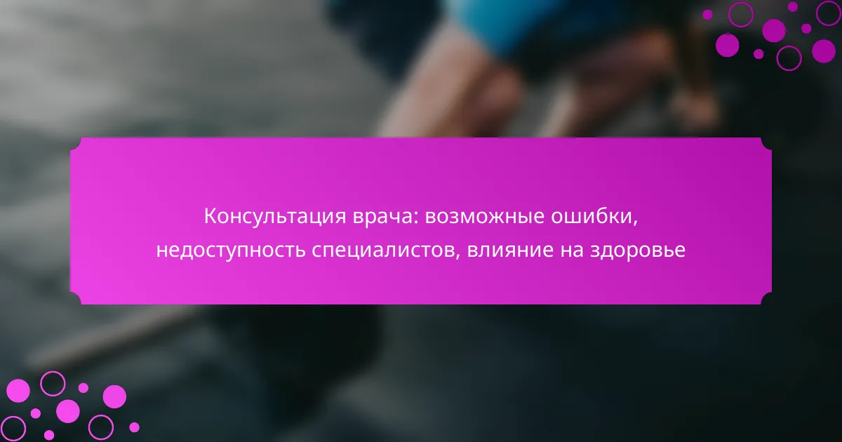 Консультация врача играет ключевую роль в поддержании здоровья, однако она может быть сопряжена с различными ошибками, которые негативно сказываются на состоянии пациента. Недоступность квалифицированных специалистов также может привести к задержкам в лечении и ухудшению здоровья, что подчеркивает важность тщательного выбора врача для получения необходимой медицинской помощи.