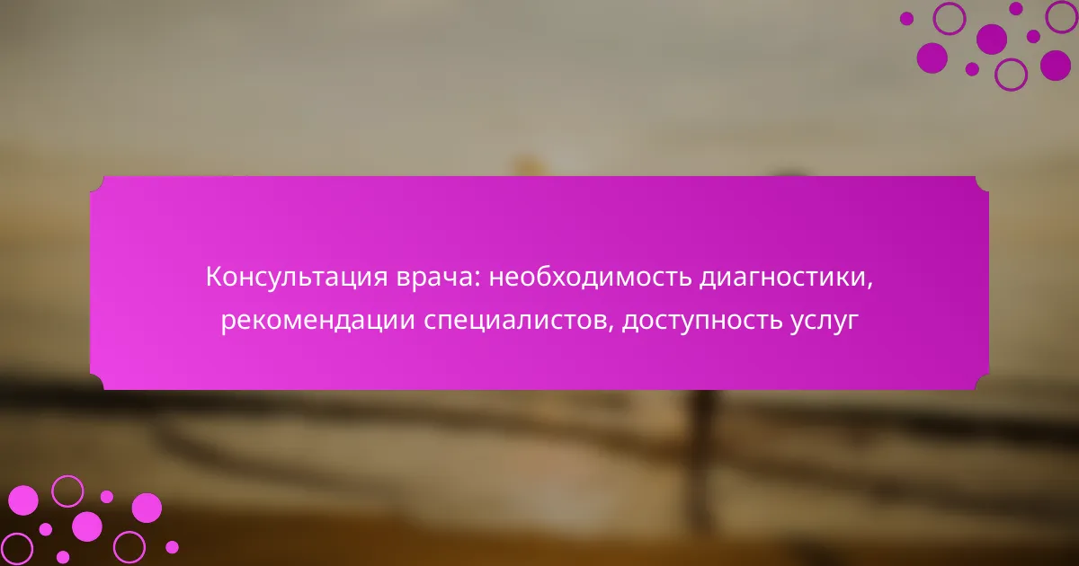 Консультация врача играет ключевую роль в своевременной диагностике и лечении заболеваний, обеспечивая профессиональную оценку состояния здоровья. Выбор квалифицированного специалиста и доступность медицинских услуг в вашем регионе являются важными аспектами для получения качественной помощи.