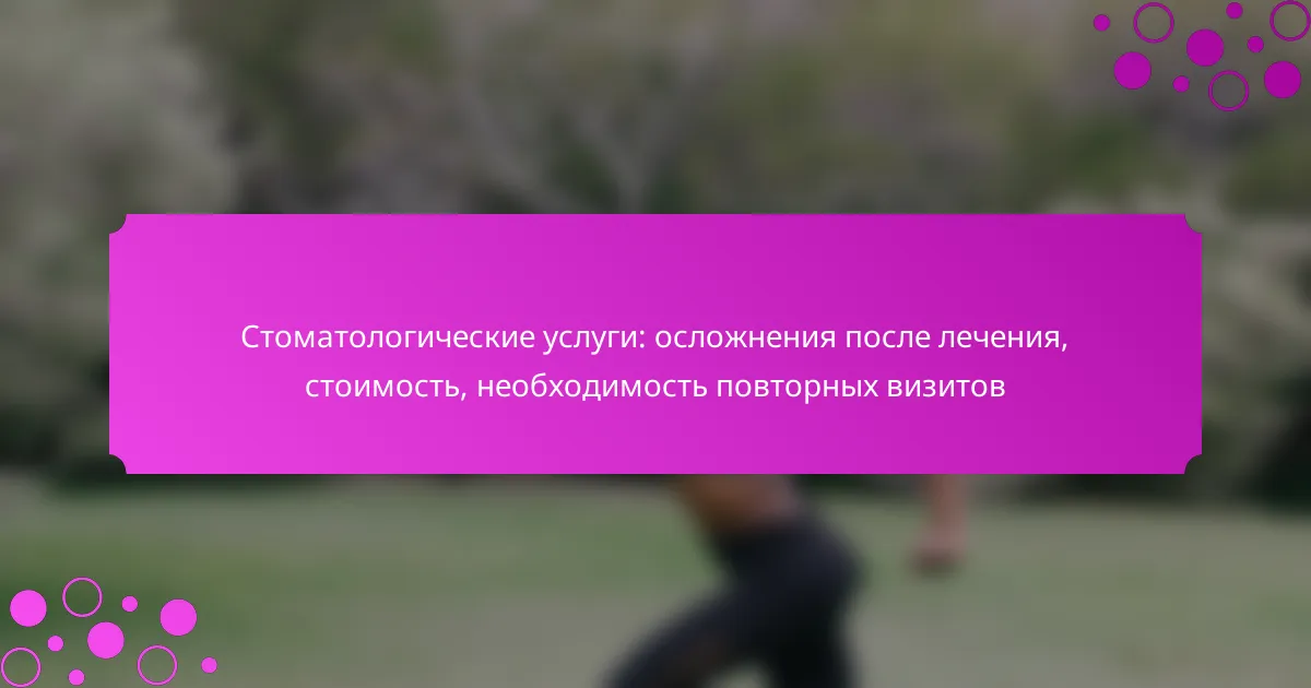 Стоматологические услуги включают разнообразные процедуры, направленные на диагностику и лечение заболеваний зубов и полости рта. После лечения могут возникнуть осложнения, поэтому важно быть внимательным к своему состоянию и обращаться к врачу при необходимости. Стоимость услуг варьируется в зависимости от сложности процедуры и региона, что стоит учитывать при планировании визитов к стоматологу.